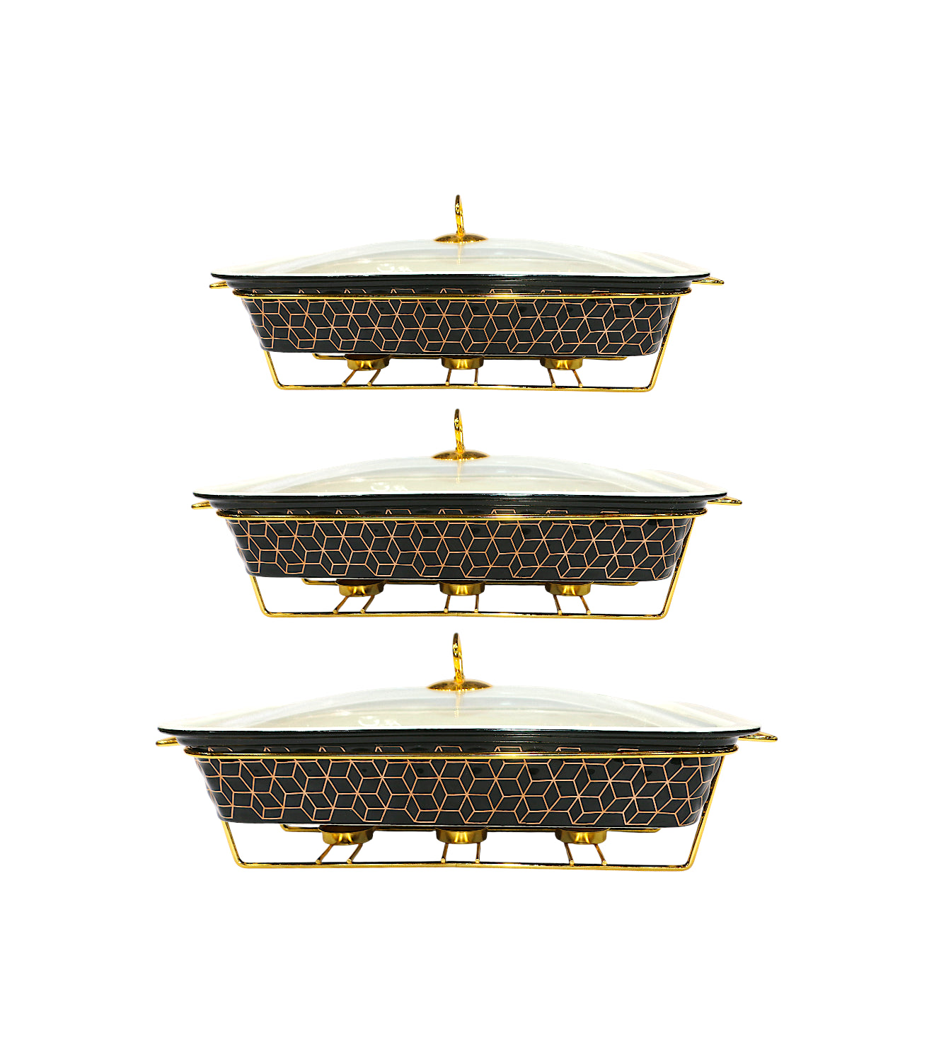 ceramic casserole 3pc rectangle with metal stand black china