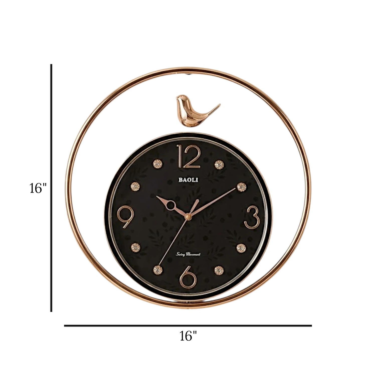fancy wall clock black & golden sparrow pendulam 16"x16" china