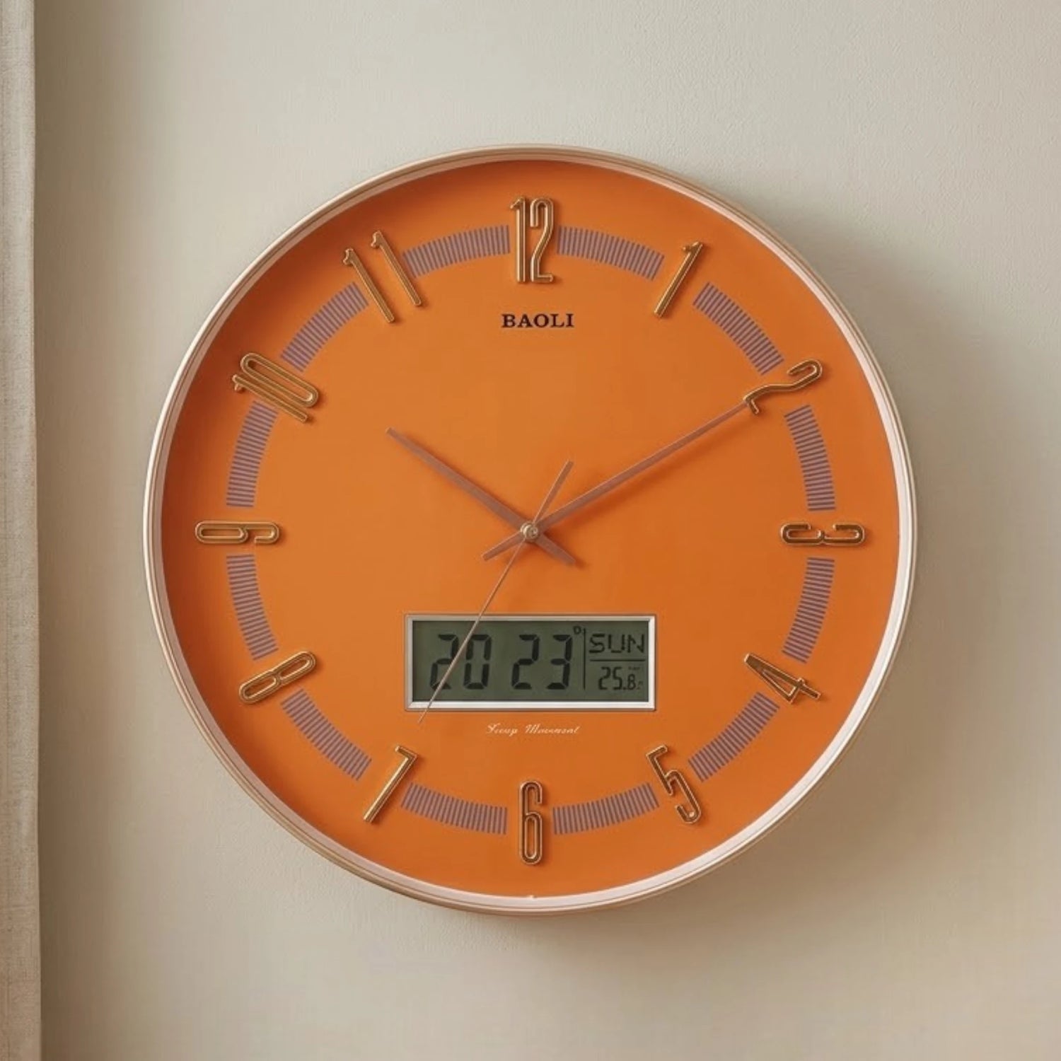 wall clock with digital date orange & golden 16''x16'' china is backordered and will ship as soon as it is back in stock.