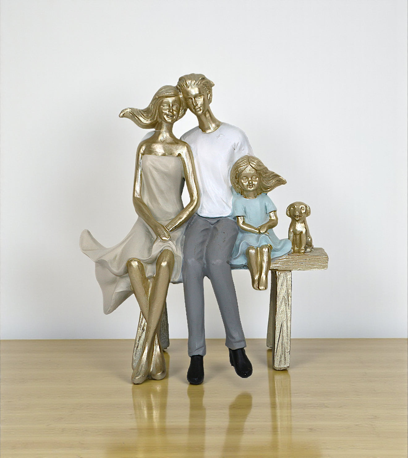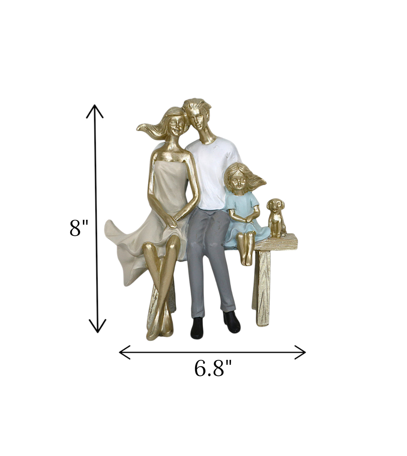 ceramic statue mom dad & child with dog siting on bench china 8x6.8 is backordered and will ship as soon as it is back in stock.