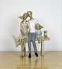 ceramic statue mom dad & child with dog siting on bench china 8x6.8