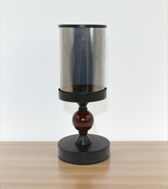 decorative glass candle holder wood ring black china "11x4.4"