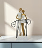 statue couple standing on stairs white china